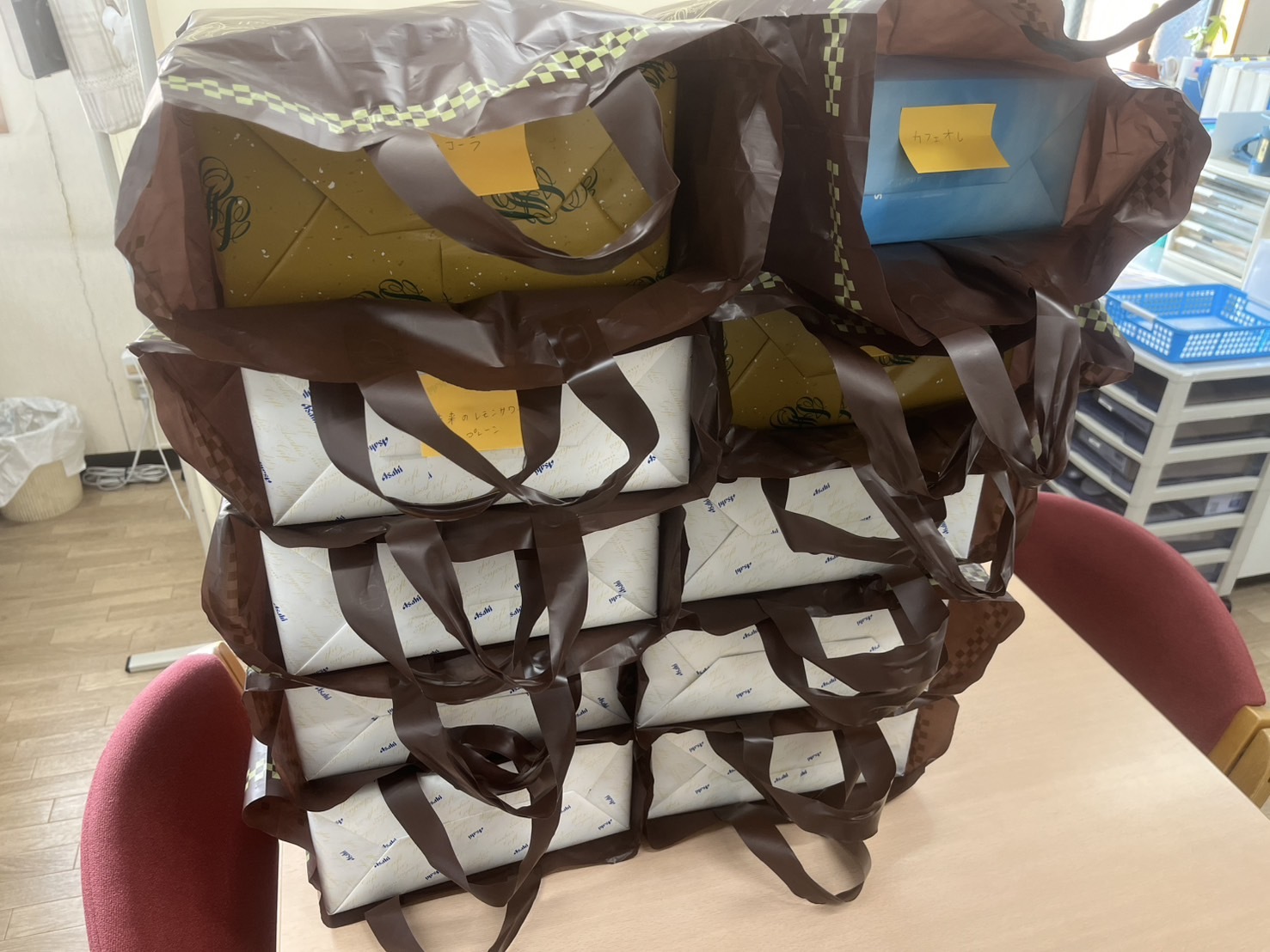 社長より1年間お疲れ様とビールやジュースなどいただきました✨